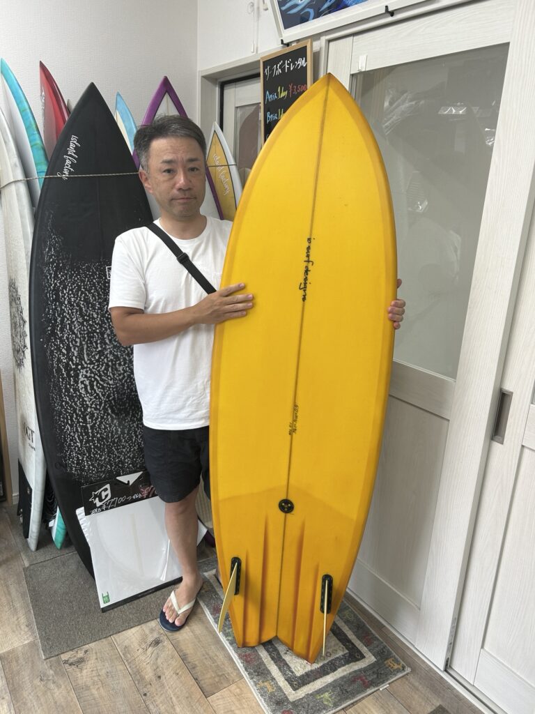 2025年8月10日 / 最終更新日時 : 2025年8月10日 islandfactory 未分類 婿入りです☝🏻 パフォーマンス性能と乗りやすさが人気のチャンネルフィッシュ、 今回はシブいイエローのティントカラーで仕上がりました。 . . Fさん、たいへんお待たせしました🙇🏻 . . 夏休み、これで良い波ガンガン乗ってください🫡